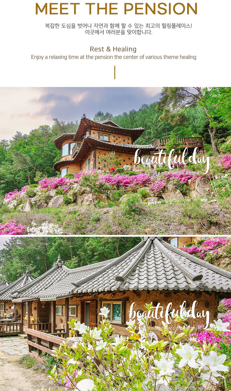 "새로운 문화 휴식 공간으로의 초대!" 자연 속에 조화롭게 어우러진 공작산비룡펜션은 배산임수의 아늑함과 편안함을 누리며 자연과 하나 되어 자유를 만끽할 수 있는 새로운 휴식 문화 공간으로 여러분을 초대합니다. 소중한 사람들과 이곳에서 추억을 만들 수 있는 여행이 되도록 최선을 다하겠습니다. 감사합니다.